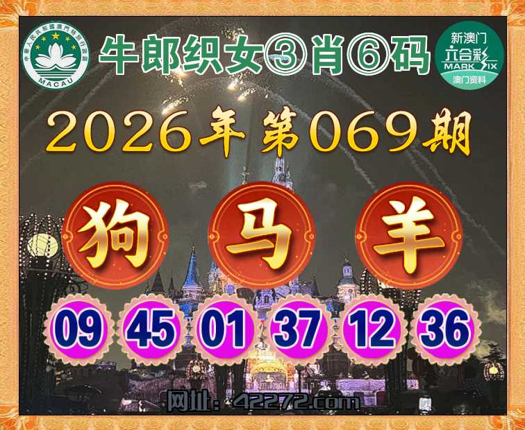069期:【牛郎织女】 ③肖⑥码【狗马羊】开:00准