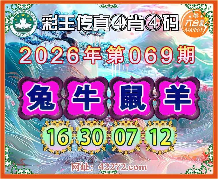 069期:《彩王传真》 ④肖④码【兔牛鼠羊】【16.30.07.12】开:00准
